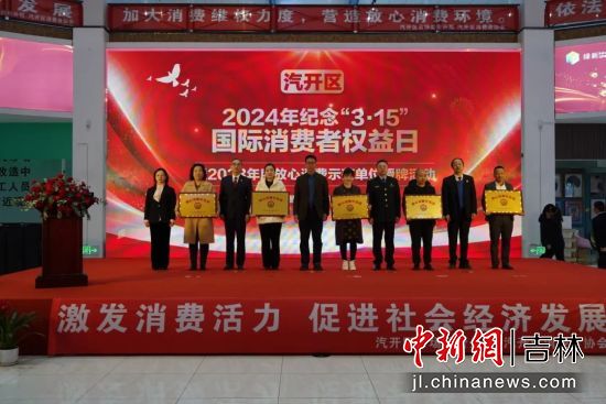 此次活動以“激發(fā)消費活力”為主題,旨在推進(jìn)“放心消費在長春”創(chuàng)建工作;顒又校L春市市場監(jiān)管局汽開分局通報了2023年度消費維權(quán)工作情況,宣讀了“放心消費示范單位”命名決定。長春汽開法院副院長韓新建與成員單位領(lǐng)導(dǎo)為示范單位代表進(jìn)行授牌。
