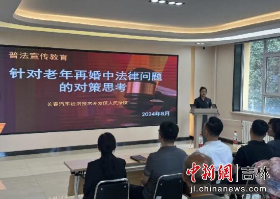 中新網(wǎng)吉林新聞9月2日電 (石洪宇 馮昊)近日,長春汽車經(jīng)濟(jì)技術(shù)開發(fā)區(qū)人民法院審判委員會(huì)專職委員沈楠與立案庭法官助理馮昊走進(jìn)楊柳社區(qū),并以“針對(duì)老年再婚中法律問題的對(duì)策思考”為主題開展普法講座,為老年群體和社區(qū)工作人員普及相關(guān)法律知識(shí)。