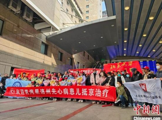 3月19日,來自青海省果洛藏族自治州的17名先天性心臟病患兒在家屬等人陪同下,乘坐火車抵達北京西站,將在北京的四家醫(yī)院接受免費手術治療。圖為接站現場。中新社發(fā) “同心·共鑄中國心”組委會供圖