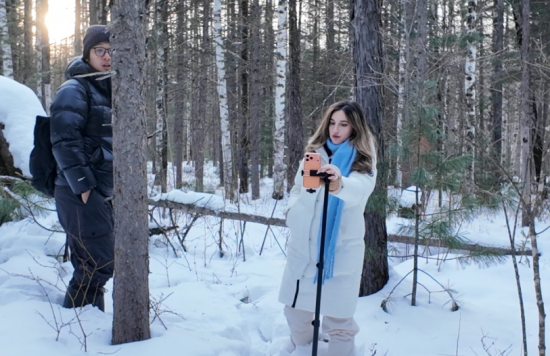 12月20日,國際媒體采風(fēng)團(tuán)一行走進(jìn)長白山聚龍火山石林體驗(yàn)雪谷穿越,3.1公里的徒步路線上,火山浮石覆雪而立,溪水潺潺在白雪間流過,原生態(tài)森林雪景讓采風(fēng)團(tuán)成員不時駐足驚嘆,快門聲此起彼伏。