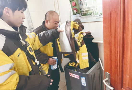 1月19日一早,記者走進服務驛站時,已有幾位騎手在此休息。干凈整潔的床鋪、沙發(fā)、桌椅,晾衣架、飲水機、微波爐、礦泉水、應急藥品等一應俱全!斑@個服務驛站特別好,旁邊就是美團的工作站點,每天開完早會或者不忙時,我們都會來這休息,吃個飯、喝口水,告別風餐露宿。衣服臟了還可以用洗衣機洗,特別省心,就像家一樣。”外賣員郭蕊說。