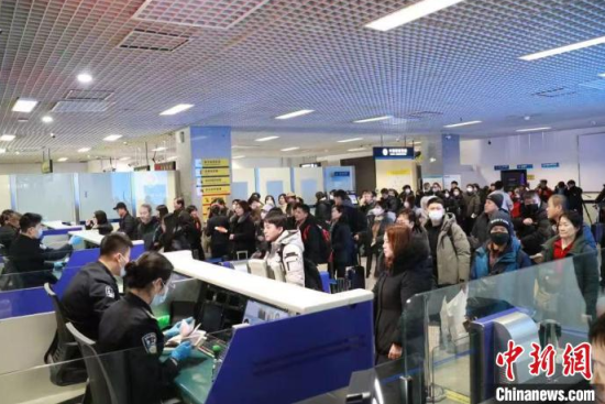 今年春節(jié)假期期間,入境旅客在延吉機(jī)場排隊(duì)等候查驗(yàn)。(資料圖)麻馨允 攝