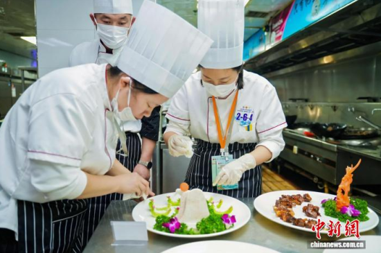 當天上午,多支代表隊在后廚忙碌,操作臺上,參賽廚師依照藥膳指導師開具的方子,將精選的人參等藥材進行預處理,再與母雞、松花江魚等主料一同入鍋!斑@道湯適合體虛者,我們控制了人參用量,確保其口味和養(yǎng)生功效。”一位選手介紹。