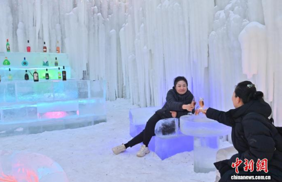 吉林長(zhǎng)春:冰瀑“酒吧”吸引游客打卡