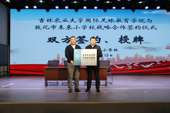 為進(jìn)一步深化高校與基礎(chǔ)教育合作,推動實(shí)踐育人協(xié)同發(fā)展。近日,吉林農(nóng)業(yè)大學(xué)國際足球教育學(xué)院校外實(shí)踐教學(xué)基地與敦化市教育局戰(zhàn)略合作簽約儀式在敦化市未來小學(xué)校舉行。教育部東北校園足球發(fā)展研究中心秘書長、吉林省學(xué)生體質(zhì)健康研究中心主任、吉林農(nóng)業(yè)大學(xué)國際足球教育學(xué)院院長張志成同志,吉林農(nóng)業(yè)大學(xué)國際足球教育學(xué)院副書記趙立剛同志及學(xué)院一行人員,敦化市教育局黨組書記、局長姬廣建同志,敦化市教育局黨組成員、教育工委專職副書記張冬輝同志,以及卓越科技有限公司代表等出席了本次活動。