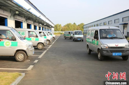 位于吉林輝南的一處農(nóng)村物流站,運輸車輛正駛出車庫。(資料圖) 吉林省交通運輸廳供圖