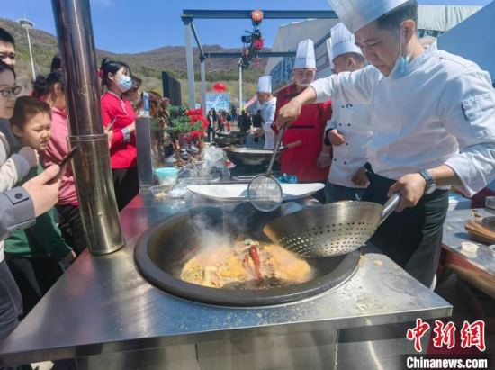 廚師現(xiàn)場制作開江魚邀游客品嘗!∈橛/攝