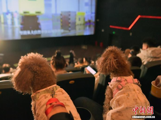 12月5日晚,吉林長春,兩只“汪星人”在觀影。近日,吉林長春一家影院創(chuàng)新推出“寵物陪伴觀影”特色專場,吸引不少市民帶著愛寵一同走進電影院,共享觀影樂趣。為提升“人寵共處”的體驗,影院專門對場內(nèi)光線與音量進行了適應性調(diào)整,并提前備好寵物坐墊、尿不濕等應急物品,力求為寵物和主人打造一個舒適、安心的觀影環(huán)境。中新社記者 張瑤 攝