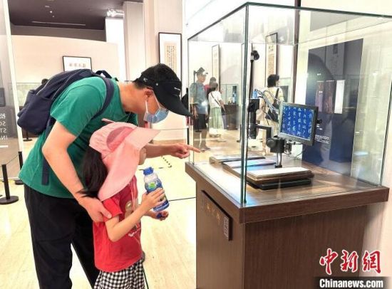 硯上微刻文字用顯微鏡才能看清。 郭佳 攝