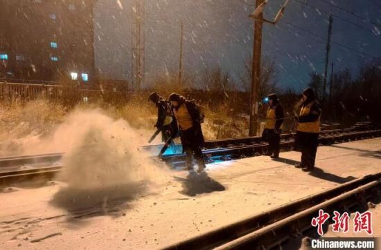 長春鐵路部門連夜清雪。中國鐵路沈陽局集團(tuán)有限公司長春站供圖