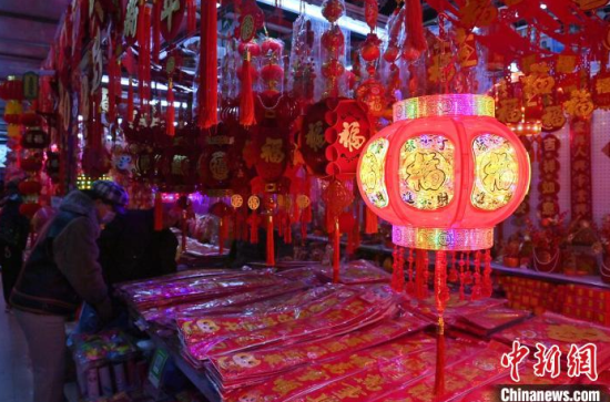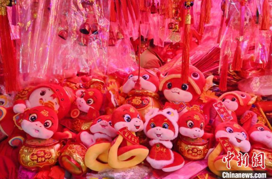 1月10日,吉林長春,市民在選購蛇年新春飾品。隨著農(nóng)歷春節(jié)的臨近,燈籠、春聯(lián)、年畫、福字等新春飾品逐漸熱銷。中新社記者 張瑤 攝