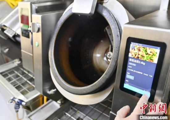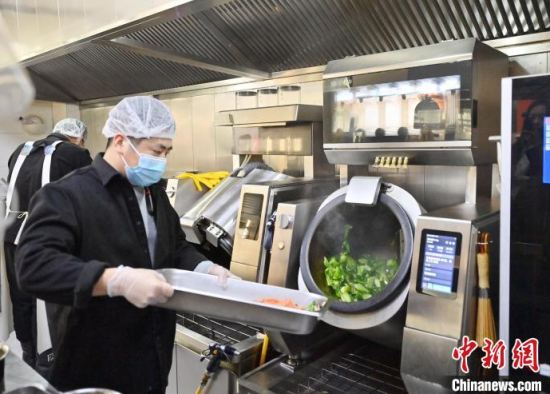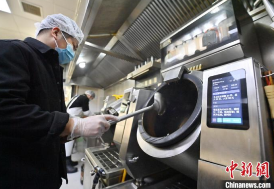 2月11日,吉林長(zhǎng)春,工作人員在智慧敬老食堂操作炒菜機(jī)器人進(jìn)行烹飪。據(jù)了解,在這個(gè)智慧敬老食堂用餐的老年人不僅能品嘗到由炒菜機(jī)器人制作的菜品,還能通過(guò)取餐通道旁邊的電子屏幕查看菜品的營(yíng)養(yǎng)成分等信息。中新社記者 張瑤 攝