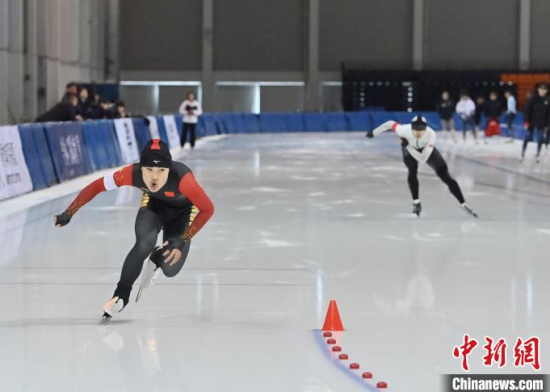3月13日,2024-2025賽季全國速度滑冰青年錦標賽在吉林省速滑館開賽,來自全國各地200余名運動員參賽。圖為運動員在激烈比拼。中新社記者 張瑤 攝