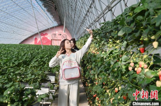 3月14日,游客在位于吉林省長春市雙陽區(qū)奢嶺街道的采摘園采摘草莓。當(dāng)天,第十一屆雙陽奢嶺溫泉草莓旅游季拉開帷幕,大棚內(nèi)的草莓也正迎來盛果期。據(jù)悉,奢嶺草莓園是吉林省內(nèi)規(guī)模最大的草莓種植、采摘基地。中新社記者 張瑤 攝