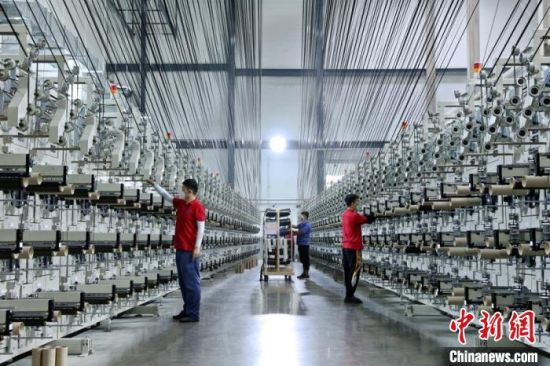 吉林市化纖企業(yè)生產(chǎn)車間正在進行收絲作業(yè)。(資料圖) 凌西政 攝